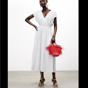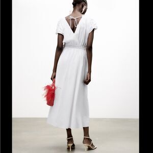 Zara Contrasting Elactis Detail Poplin Dress
