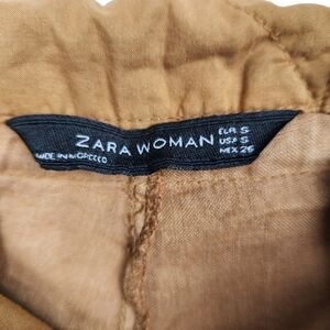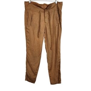 Zara Copper Brown 100% Linen Paperbag Waist Pants Size Small