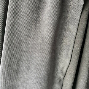 Dark charcoal gray ribbed corduroy look shirt jacket with hidden button closures. Oversized fit for layering. In good condition