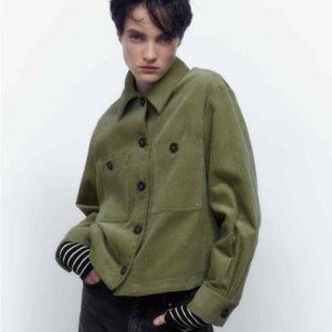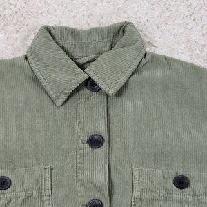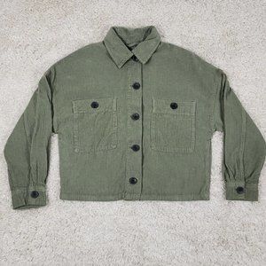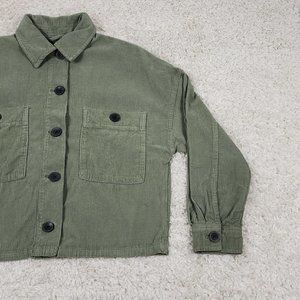 Zara Corduroy Jacket Womens XS Green Button Long Sleeve Cotton Front Pockets