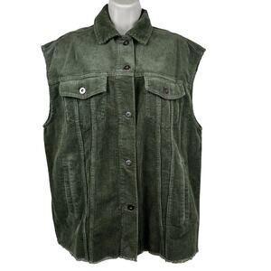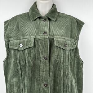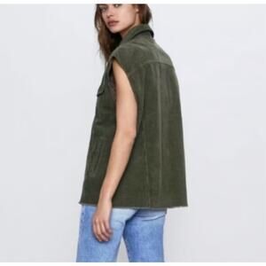 Zara Corduroy Vest Oversized Trucker Style Olive Green Women's Small