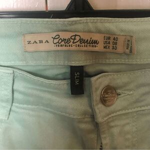 Zara Core Denim Trafaluc Collection Womens Slim Skinny Jeans Green Size 8 Features: Low Rise Skinny Slim Traditional 5-Pockets Styling Button Fly Zip Condition: Pre-owned in excellent condition SKU: 99