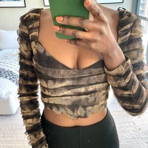 Title: Zara Long Sleeve Mesh Tulle Corset Crop Top