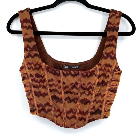 Zara Corset Women's M Y2K Festival Mesh Streetwear Mobwife Chocolate Brown Boho