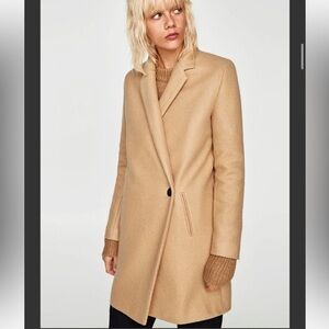 Zara Cotton Blend Double Breasted Soft Camel Trench Coat Tan Plush Single Button PeaCoat