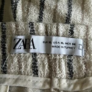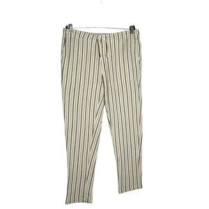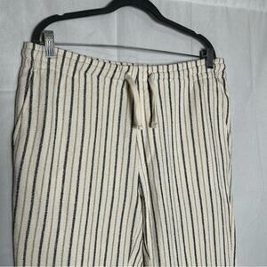 Zara Cotton Blend Striped Earth Tone Crinkle Fabric Drawstring Waist Pants XL