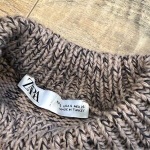 Embrace the chill with this Zara gray cowl neck sweater, featuring a cozy knit texture and thick ribbed cuffs for added warmth. The speckled gray design adds a touch of sophistication, making it a versatile addition to your winter wardrobe. Its medium to heavy weight ensures comfort and style during the colder months.