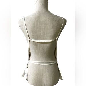 NWT. This sleeveless camisole from Zara features an asymmetrical design in a soft cream color. Its minimalist style and fitted silhouette make it a versatile piece for any occasion.