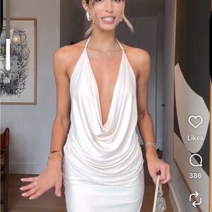 Chic backless design with halter neckline. Soft cream fabric for a stylish look.