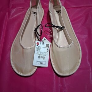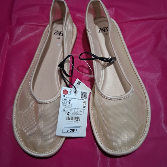 Elegant Zara flats in cream. Perfect for any occasion. Stylish and comfortable.