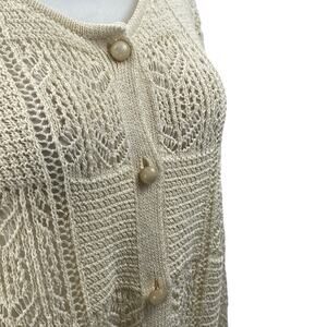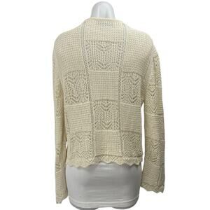 Zara Cream Beige Open Knit Long Sleeve Button Down Cardigan Sweater Top Size S
