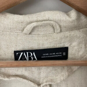 Zara Cream Beige Oversized Linen Blend Single Button Blazer Size XS