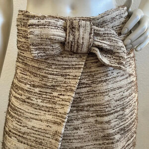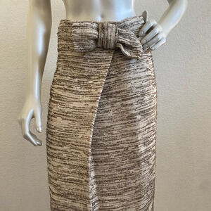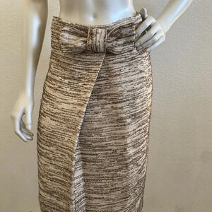 Zara Cream & Brown Tweed Bow Pencil Skirt - Size 4