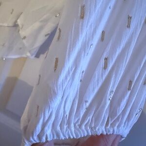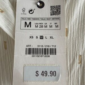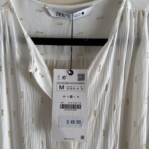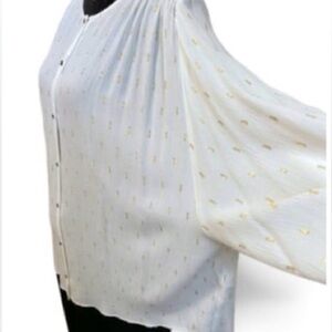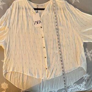 Zara cream and gold blouse with button-up front. Batwing or Dolman type sleeve. Features subtle texture and elegant design. Ideal for versatile styling. Lightweight with loose flowy slightly oversized fit.