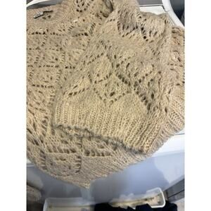 Zara Cream Crochet Knit Sweater Size Medium Bell Sleeve