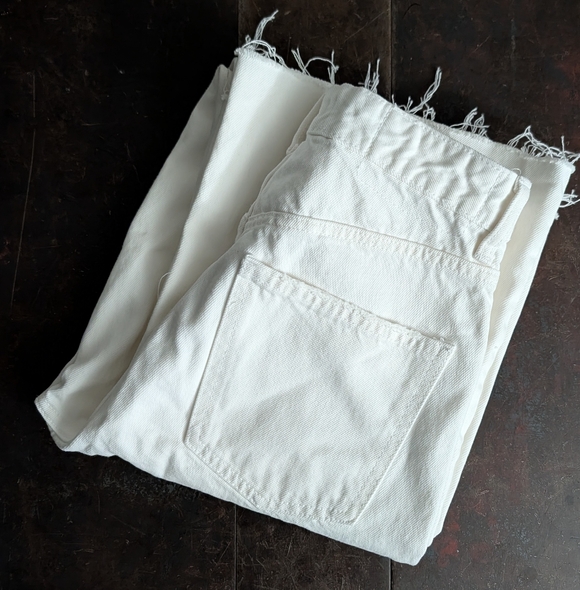 These jeans are brand new and have never been worn. The zipper is broken - you can't unzip it all the way because it's not connected at the very base. The price reflects the defect. They are beautiful jeans. I hope they go to a good home.