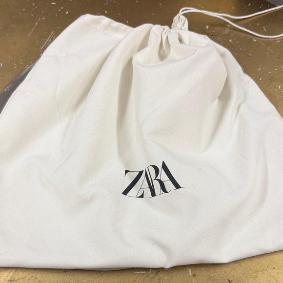 Elegant cream pouch with drawstring closure. Features Zara branding. Ideal for daily use.