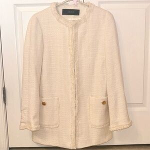Zara Cream Ivory Tweed Fringe Long Buttoned Coat M