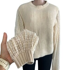 Zara Cream Knit Sheer Long Sleeve Sweater in size Medium.