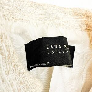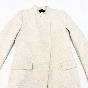Zara Cream Long Blazer Jacket Woven Tweed Light Colors Size Medium