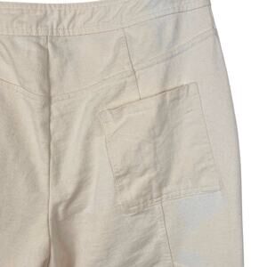 Gently used Zara cream moto utility pants. Mixed media with a knit base and denim patches. Comfy and stretchy legs, no stretch at waist. Slim straight fit. Model is a size M so expect a tighter fit. Cream/beige color looks like linen.