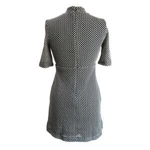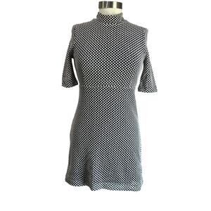 Zara Cream & Navy Knit Jacquard Mock Neck Skater Dress Size Small