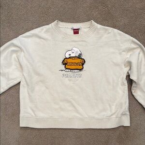Stylish cream sweatshirt with Peanuts design featuring Snoopy. Ideal for everyday comfort. Tiny spot on the front otherwise good condition. See photo.