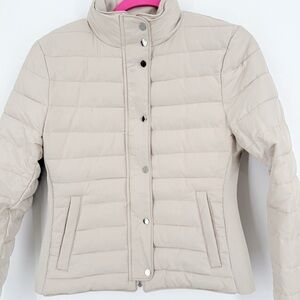 Zara Cream Quilted Puffer Jacket with Standing Collar