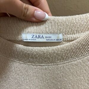This cream top from Zara features a relaxed fit with stylish ruched detailing on the sleeves. Made from a soft material, it offers comfort and versatility for any casual occasion. The long sleeves and classic design make it a perfect addition to your wardrobe.