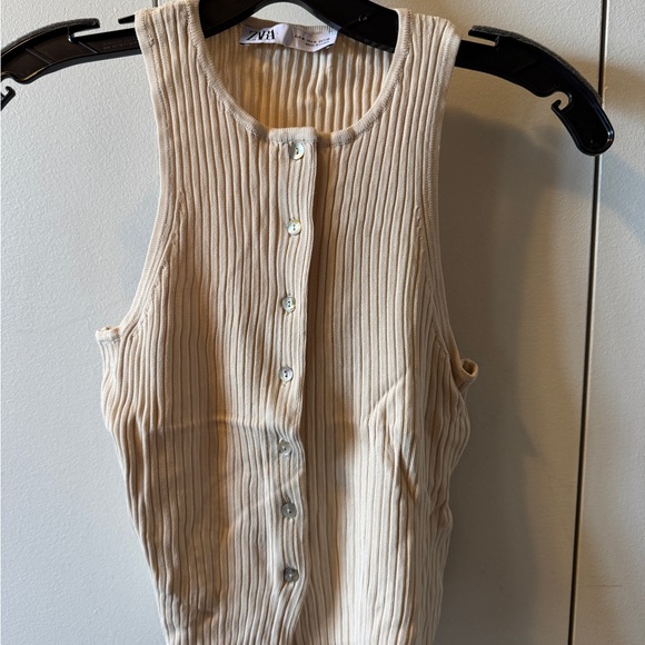 Zara Cream Ribbed Button-Front Tank