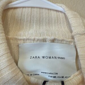 ZARA Cream Ribbed Long Sleeve Mock Neck Dress – Size M/L