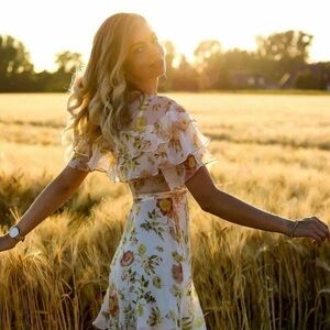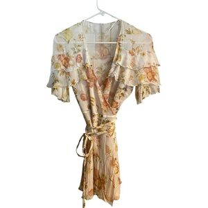 Zara Cream Romantic floral chiffon ruffle wrap dress Fairy Boho western feminine