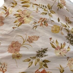 the colors are off white and blush peach , safe green and golden yellows . both a spring summer and fall dress .