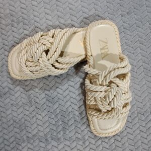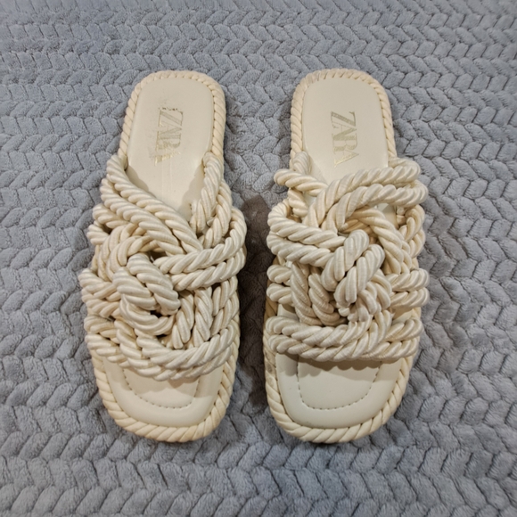 Step into style with Zara's cream rope knot slides. Perfect for casual outings, these shoes offer both comfort and elegance.