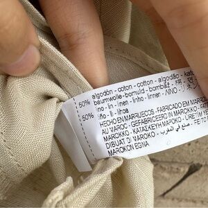 Chic cream blouse with ruffle details. Features buttoned front. Stylish and versatile.
