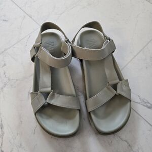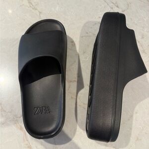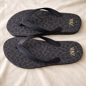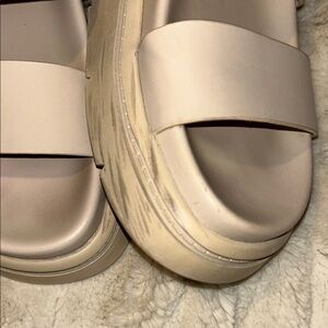 Stylish cream sandals by Zara. Features double strap design. Comfortable and chic.