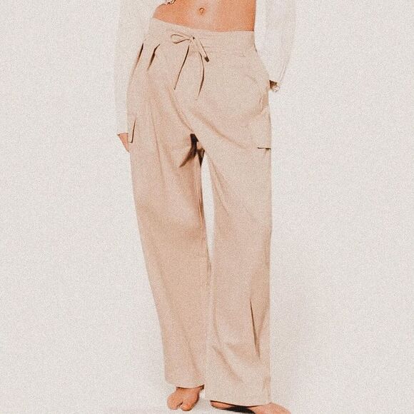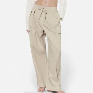 Zara Cream Tie front loose leg cargo Trousers NWT L | Minimalist Tailored