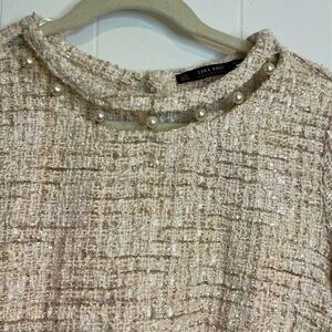 Zara Cream Tweed Top with Pearl Details