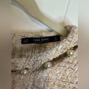 Zara Sz XL Beige Pink Faux Pearl Neckline Boucle Style Tweed Boxy Cropped Top