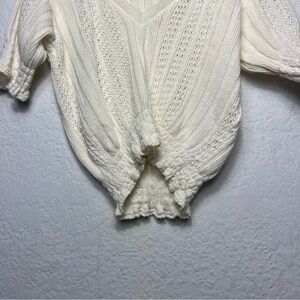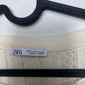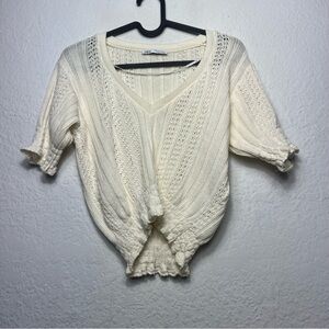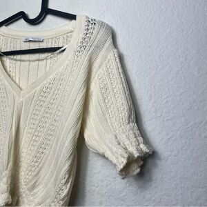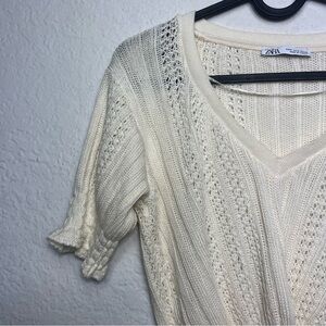 Zara Cream V Neck Crochet Knit Sweater Top Short Sleeve Stretch Size S Good condition