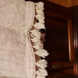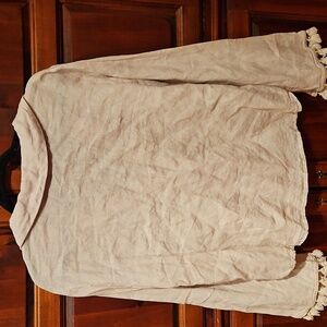 Zara cream top with v neck, button-down front, and stylish tassel/fringe details at the ends of the sleeves. Perfect for casual or dressy occasions.
