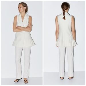 Zara Cream Waistcoat with Pleated Hem
