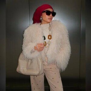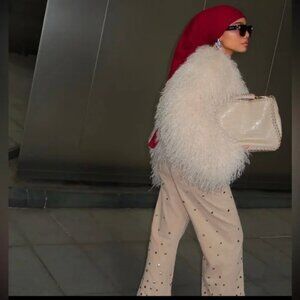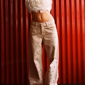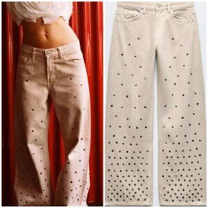 Stylish cream wide leg jeans. Embellished with studs. Perfect for a chic look. Perfect with tall heels or someone 5’9 and taller