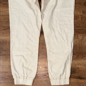 Stylish cream pants from Zara. Features a drawstring waist. Comfortable fit.