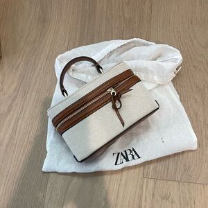Chic Zara mini handbag with zip closure. Features a sturdy handle.