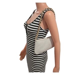 This sophisticated clutch from Zara showcases a stunning cream hue complemented by luxurious gold accents. Its compact design is perfect for evening outings, while the intricate detailing adds a touch of elegance to any ensemble.
