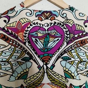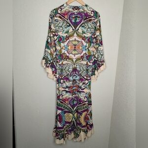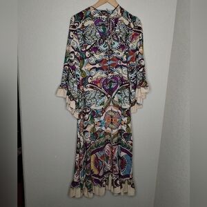 Zara Cream and Purple Resort Midi Dress with Bell Sleeves