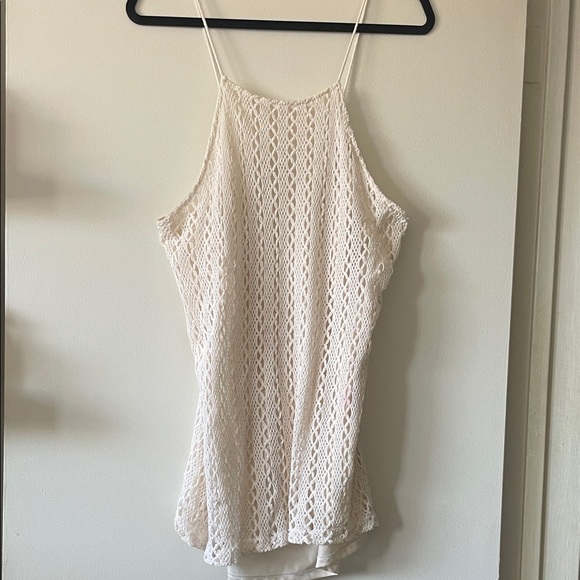 Stylish, crochet cream colored tank top. Double lined. Size Large