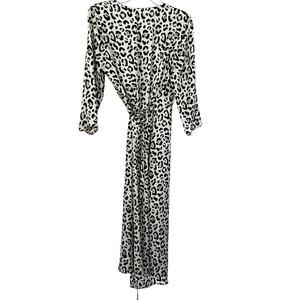 Zara Cream/Black Satin Animal Print V-neck Wrap Dress size Medium
