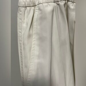 This Zara nylon lightweight skirt features a flowing midi length in a soft cream color, perfect for casual or resort wear. Its silhouette is enhanced with pleated details, offering a stylish and comfortable fit for any relaxed occasion. 100% polyester.